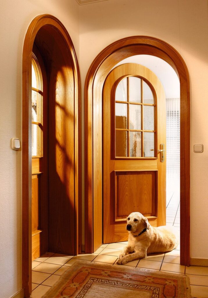 Stilvolle Rundbogentür in Rüster mit einer Füllung und Sprossenrähmchen